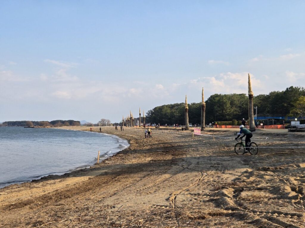 雪の水分で路面が締まったかと思いきや、コンディションに大きな変化は無かった。特に、松林区間を抜けた直後の砂浜は結構難しい。