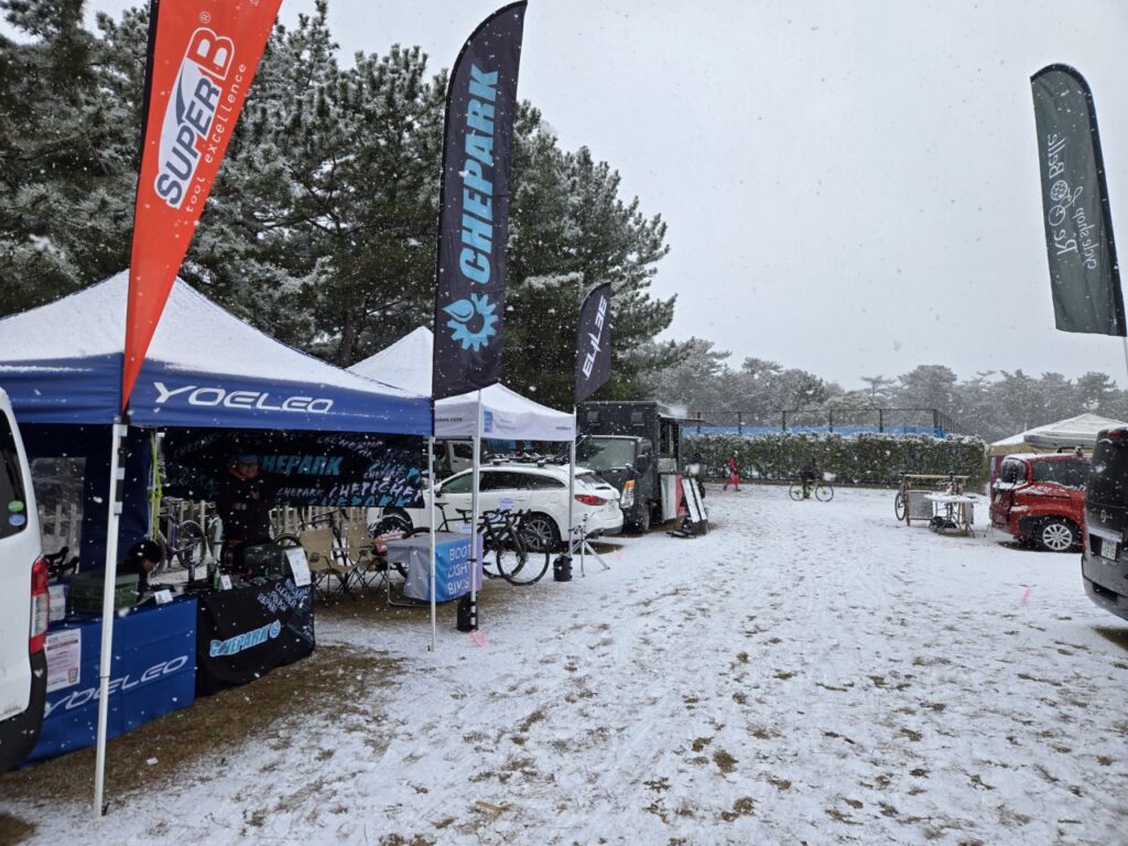レース会場はうっすら雪化粧という程度。気温が低く、乾いた雪なのでそこまで寒くはない。