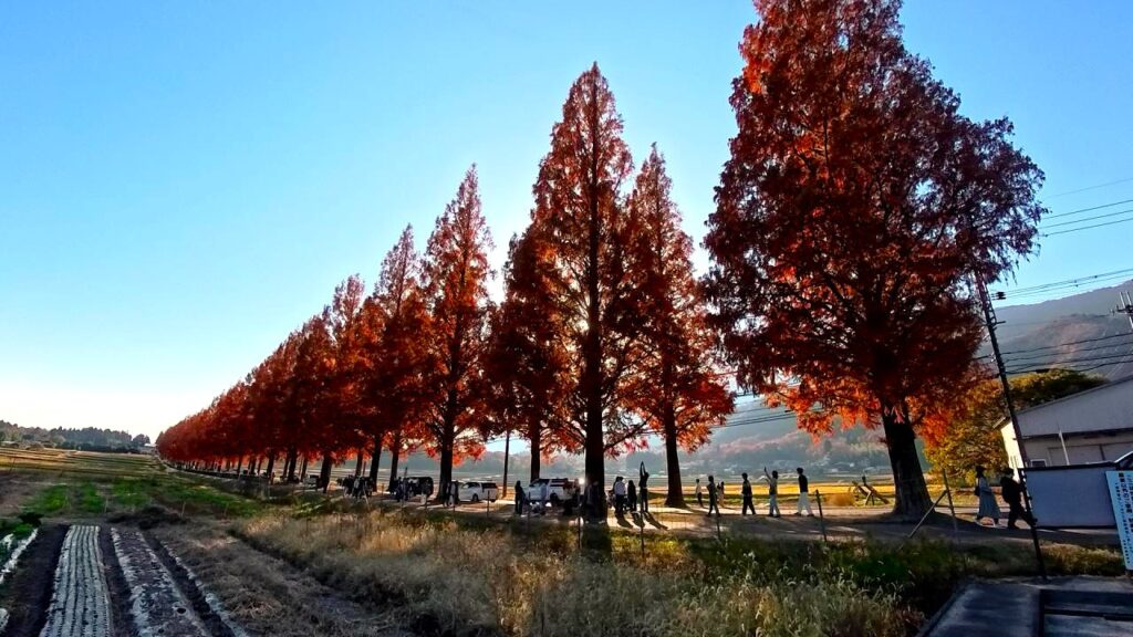 ところで、マキノ高原へ向かう道路にあるメタセコイア並木はここ数年、SNSで話題の観光スポットになっており、会場入りには難儀した。