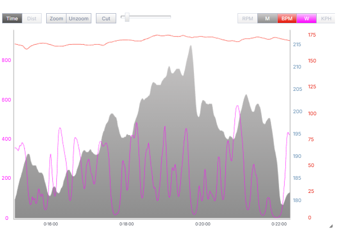 実際、レースのログを眺めると、無酸素インターバルそのものといえるグラフが描かれている。