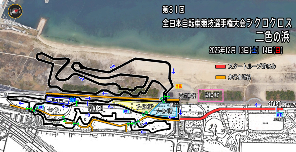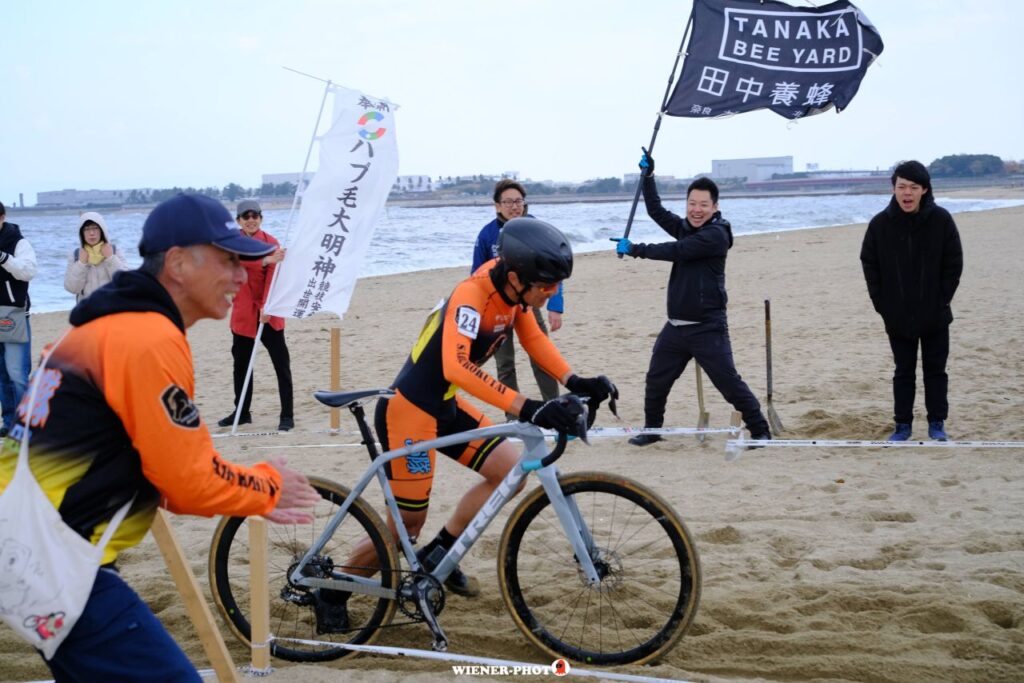 会場は、23-24シーズンから関西CXに加わった二色の浜公園。大阪府南部、大阪府南部、関西国際空港を望む海岸沿いに位置し、コースの路面は全域が砂という特徴的なレイアウトだ。