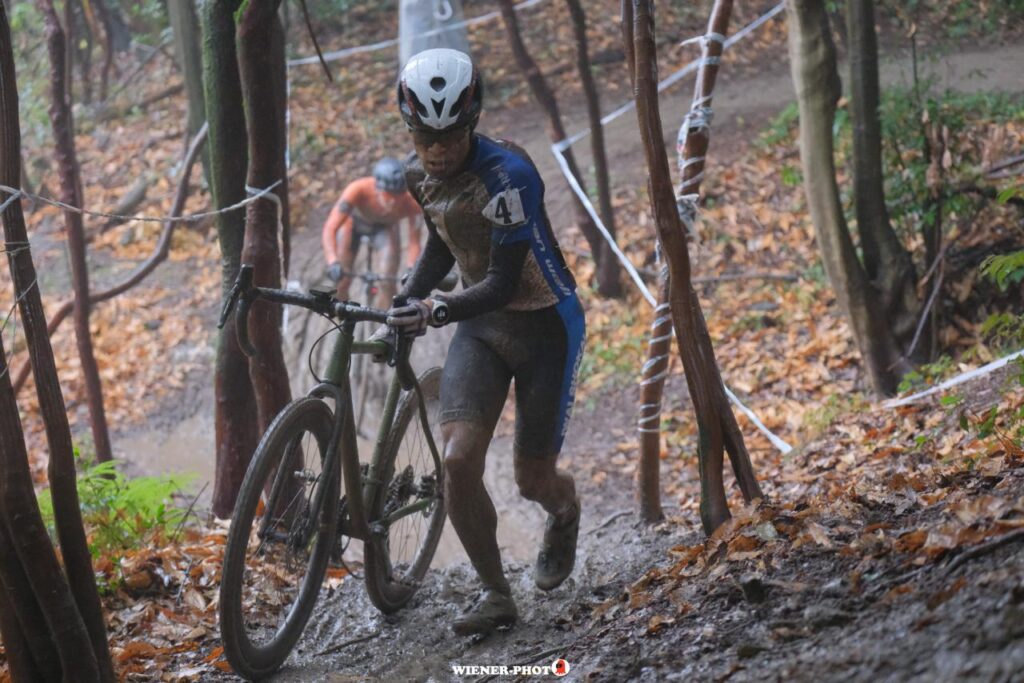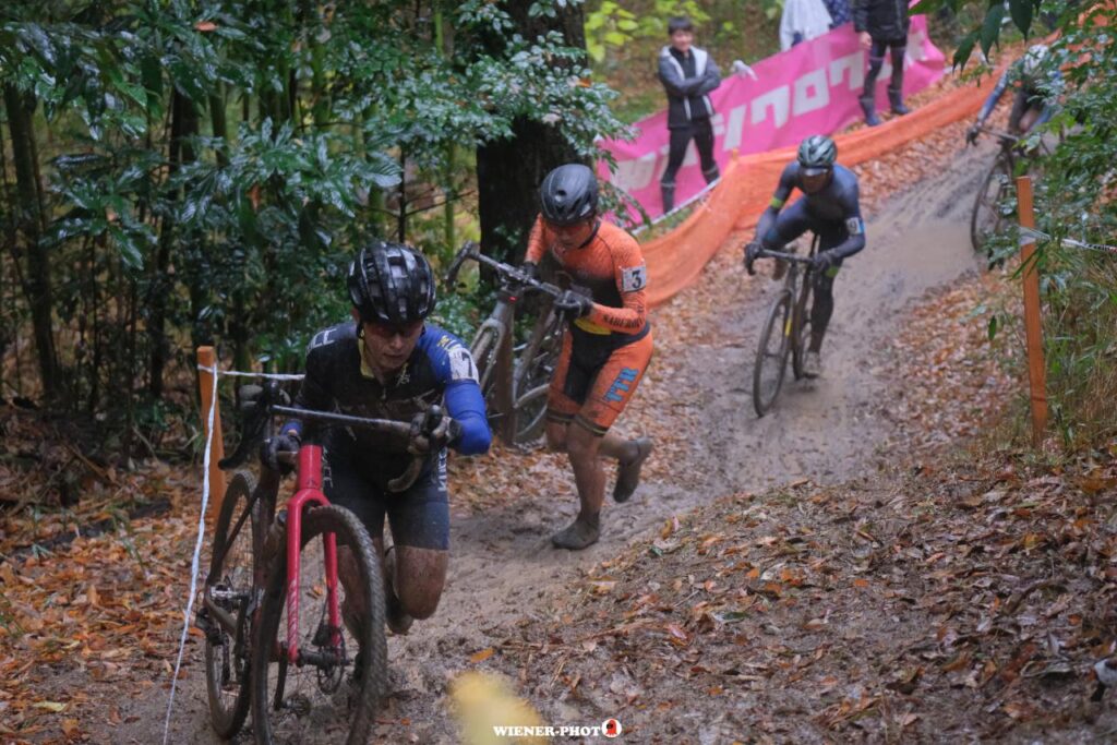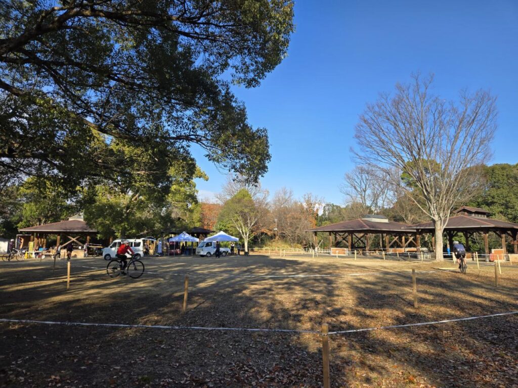 関西シクロクロス第6戦の会場は、大阪市立信太山野外活動センターだ。林間学校や自然体験の場として使われる施設で、BBQサイトの草地と周囲の山林を縫うハイキングコースを組み合わせたテクニカルなレイアウトが特徴となっている。