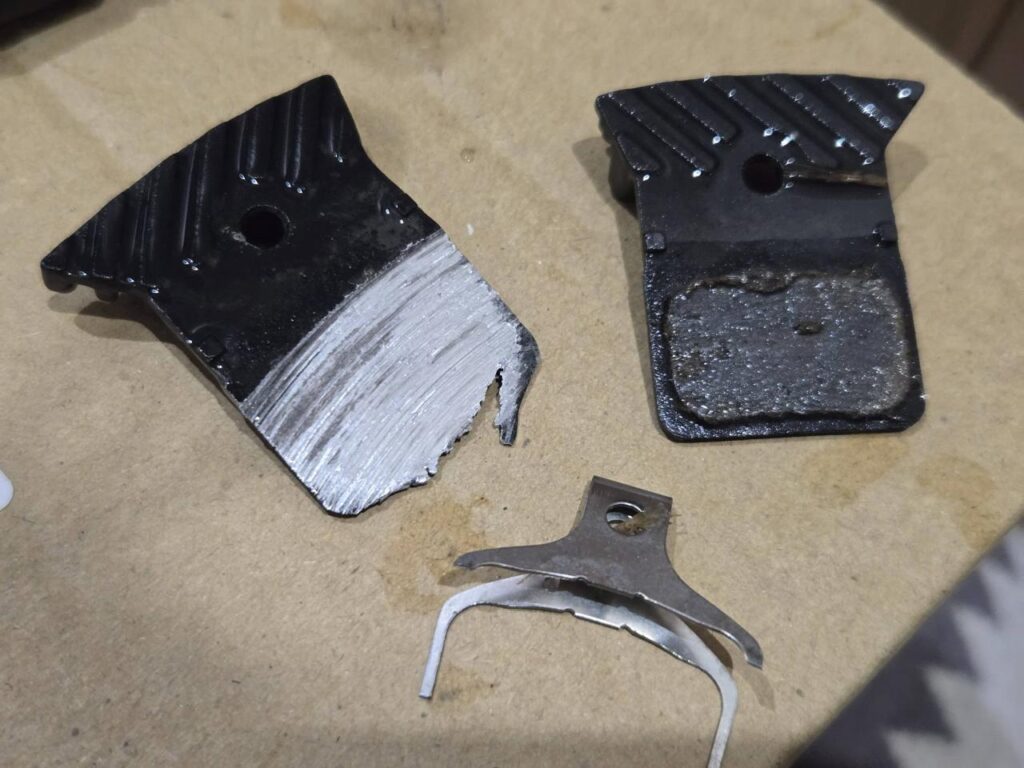 ところで帰宅後、異音がしていたリヤブレーキをチェックすると、ブレーキパッドがベースプレートまで削れていた。